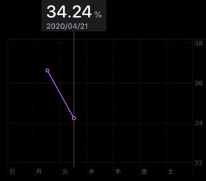 今日の体重は87.04kg -0.6kg 体脂肪は34.24% -2.39%でした。目標まではまだまだ22kgと長旅です。